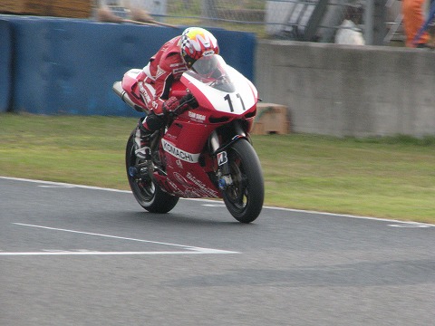 15:41 須貝選手 唯一、2気筒のドカで参戦する須貝選手。 前戦オートポリスでは、6位に入賞。 4気筒より不利と言われるなか、今回も善戦し7位でフィニッシュ。 |
