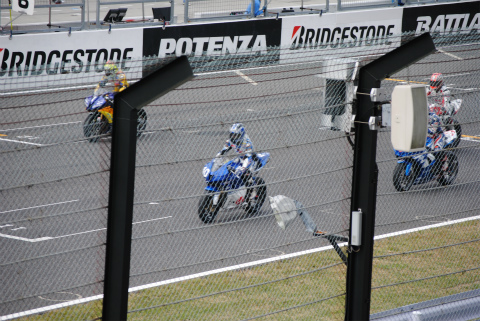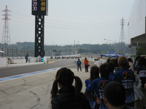 10:11 ウォーミングアップラン 1周のウォーミングアップランを終え、各マシンがグリッドにもどってきました。 各マシンがグリッドに着いて、ライダーはスタートの合図の赤のシグナルが消灯するのを待ちます。 ※ 写真はえ”まさんから、いただきました。 ありがとうございます。 |