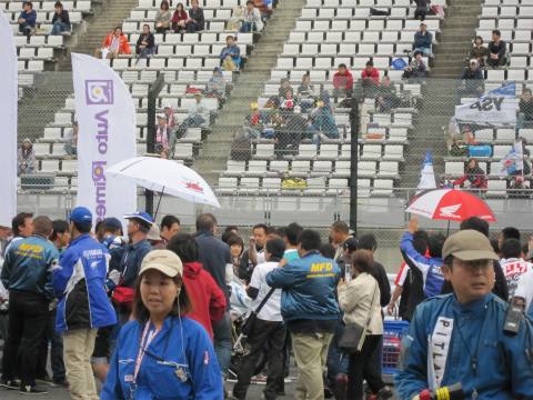 11:02 雨粒が・・・。 JSBクラスのスタート進行が進む中、ついに雨粒が落ちてきました。 『あー。よかった!』 『自分たちがレースの時じゃなくて。』 決して、チーム力が充実してるとは言えない、プライベートチームの本音です。(汗) |