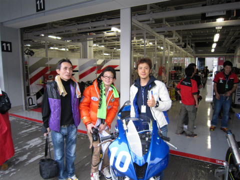 18:23 終了 1シーズン分の挨拶とかしていて時間がかかったけど、片付けも終わりました。 ぼちぼち、撤収です。 2010シーズンから、國川君のヘルパーをするようになり、2010年は好調のまま、後半戦Moto2クラスにスイッチ。 今年、2011シーズンはフルに全戦ヘルパーをしました。 全日本のヘルパーは正直言って、しんどいところもあるけど、はっきり言って面白い。 さすがに、全日本、地方選とは違って、当然国内最高峰のレースで、ライダーはもとより、メカニックもヘルパーもプロがそろっている。 自分みたいな素人が、全日本のヘルパーをさせてもらう機会を与えたもらえるなんて、この場を借りて、 『國川に感謝!』 m(_ _)m |