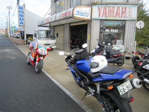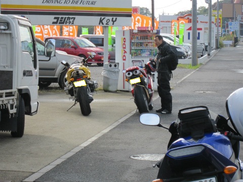 6:04 まずはハイエースで ツーリングには6時に出発する予定で、まずはハイエースにR1を積み込みます。 R1をハイエースに積み込むと言うことは、K2Yに集合と言うことですね。 今年は、仕事の関係で8月は静岡県の富士市、9月は愛知県の常滑、10月は名古屋とジプシー生活を送っていました。 それはそれで楽しいんですが、ツーリングに行く時間が取れないのには閉口しました。 11月の初旬にはジプシー生活も終わったこともあり、K2Yのアイスエイジさんに声をかけて、泊まりのツーリングに行くことにしました。 今年前半は東日本大震災の影響もあってか、後半はジプシー生活で、気がつけば泊まりのツーリングに一回も行っていませんでした。 (ただし、全日本の國川くんの手伝いで、レースの時はたくさん泊まりました) |
