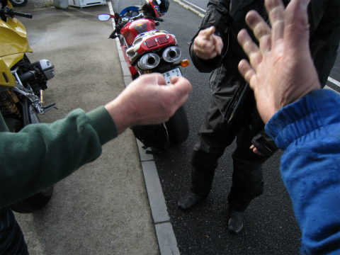 8:11 到着 で、K2Yに到着。 (実際は2時間ほどかかってます) すでに、アイスエイジさんも、岩井さんも到着済。 って言うか、集合時間8時なので、当たり前と言えば当たり前。 ハイエースからR1を下ろして、ツーリングの準備をします。 本日の参加人数は3名様。 以上です。(^^ゞ |