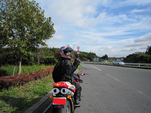 10:28 気づかれる アイスエイジさんのBMWは今回はETC車載器なし。 アイスエイジさんが現金払いのゲートで料金を払っている間に岩井さんのバックショットをとデジカメを構えたら・・・、気づかれました。(汗) |