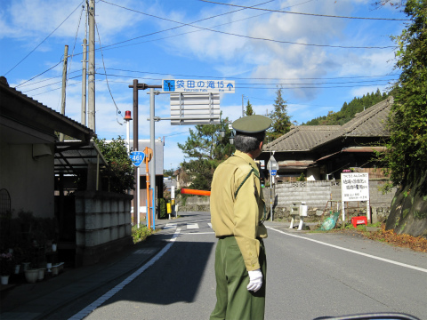12:01 二進も三進も ガソリンスタンドで給油・水分補給をしたあと、広域農道ビーフラインで北上。 紅葉のこの時期、袋田の滝周辺は大渋滞するので、表通りの国道118号線からは逃げて、裏道になる龍神大吊橋のある県道33号常陸太田大子線を北上します。 途中国道461号線に合流する区間は道幅が狭く、乗用車の離合がやっとこさ。 狭い箇所で大型バスが鉢合わせすると、二進も三進も(にっちもさっちも)行かなくなるので、紅葉のこの時期は、ガードマンを立てて片側交互通行を行っています。 この時間が結構長い!(汗) で、ガードマンさんとお話するわけだ。 で、今年は福島第一原発事故の影響もあってか、人出は去年より少ないとのことです。(今となっては情報遅すぎ!) |