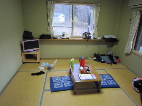 16:27 部屋は さっそく、2階の角部屋に通してもらいました。 紅葉の季節も終わり、スキーシーズンが始まるまでの閑散期と言うこともあり、泊まり客は自分たちを含めて2組だけ。 実際には、東日本大震災以降、福島原発事故の風評被害でお客さんはぐっと減っているそうです。 ここ檜原湖は福島原発から直線距離で90km以上離れており、影響はないそうです。 日常的に生活している人たちがいるわけですから。 |