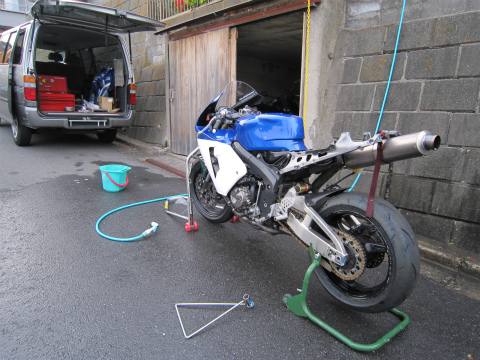 15:56 洗車 今週末は、少し時間があったので、半年間ほったらかしにしておいたCBRの整備をちょこっとすることにしました。 ガレージの中で、バイクカバーをかけて停めておいたのですが、流石に半年間おいておくと、ホコリが溜まっていました。 まずは、洗車。 11月の中旬に筑波サーキットに練習に行く予定でしたが、雨が降ってしまい、根性が無いので中止にしました。 (^_^;) |