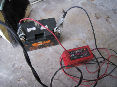 15:56 バッテリーを充電 まずは、バッテリーの充電。 充電が十分にされていないと、インジェクションが誤動作するとかしないとか。 スパークプラグの火花が、ミススパークするとかしないとか。 そんな噂を耳にしますが、充電しておくにこしたことはありません。 |