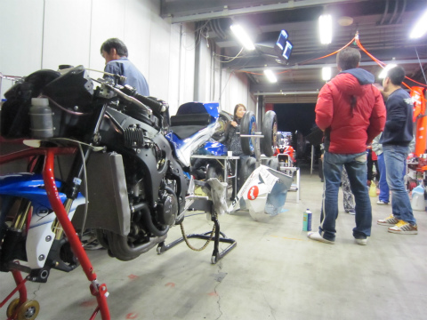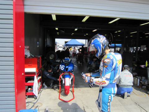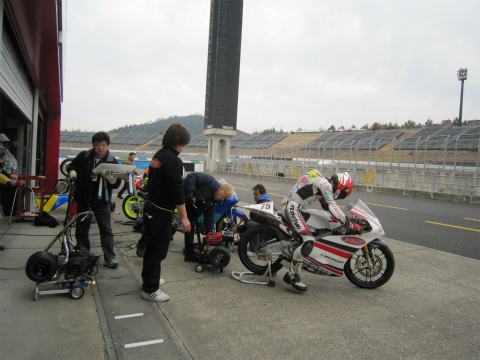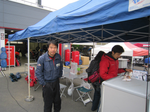 7:11 ピットに到着 南ゲートで待ち合わせをして、パスを受け取り入場して、パドックに到着。 『おはようございます! 今年もよろしくお願いします。』 と、2012年シーズンが明ける。 メカは去年に引き続いて、清水さん。 今シーズン國川くんは、昨年までの”HiRaNo”に加え”HiRaNo:HouYou”レーシングチームからエントリーしています。 |