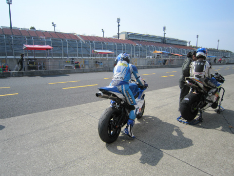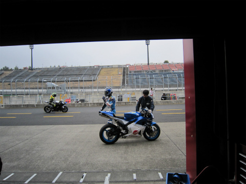 9:01 1本目 9時になって、ST600クラスの走行時間になりました。 ピットからマシンを出し、走行を始めます。 |