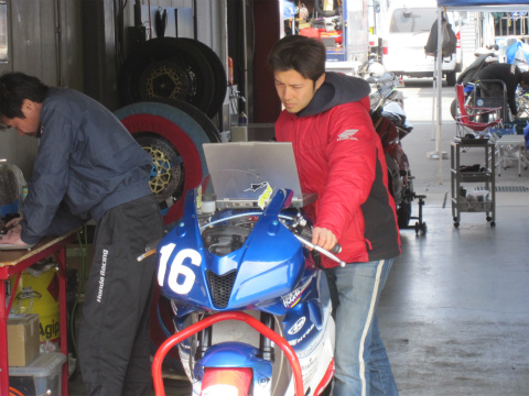 7:22 マシンは マシンは昨年に引き続き、CBR600RR。 まあ、'09年から使っているマシンですが、しっかりとメインテナンスもして、モデルチェンジもしていないので、戦闘力に問題なしです。 そして、今シーズンのゼッケンは#16。 練習が昨日の木曜日から始まっているので、すでに走行済。 今日の走行の準備ができているので、それほど準備をすることもありません。 話はかわるけど、北関東に位置するモテギは、横須賀からすると寒いね。 シャッターを開けると、風が通って寒いので、まだ開ける気がしない。 |