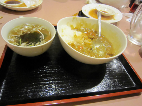 21:31 〆は 餃子の他に、エビチリとか、ニラレバとかを注文。 そして、最後の〆は、”中華風カレー”と言うのがあったので、注文。 『中華風のカレー』ってどういうの? 出てきたときに店員さんに聞いてみたら、 『中華風は具が細かく刻んであります!』ときっぱり言われた。(汗) 『具が細かく刻んであったら、中華風かい?』とツッコミを入れたくなるが、これ以上なんの答えも出てきそうもないので、やめておく。 そして、食べ終わりの写真も取り忘れたので、今日のレポはここで終わってしまうのであった。 |