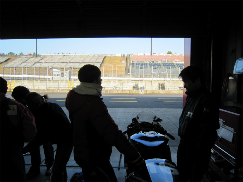 6:57 フリー走行の準備 そして、朝フリーの準備 4月に入りましたが、晴れていても、朝のモテギは結構寒い。 今回のレース、レギュレーションでタイヤは2セットしか使えないので、朝フリーは昨日の予選で使ったタイヤを使います。 (たとえ、3セット使えるとしても、朝フリーで新品入れるやつはいないだろう! と一人でツッコミを入れてみる) |