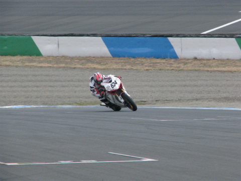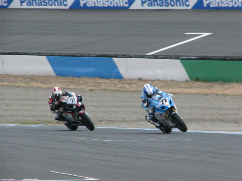 14:45 3位 そして、3位はMr。kawasakiとも言える#87柳川選手。 一眼レフなら、バシャバシャと毎週、1位から5位くらいを通して写せるんだろうけど、自分のコンデジじゃむり。 2周に分けて、1位から5位まで紹介してみました。 1位から4位まで、きれいに4メーカ直系のチームが並びましたね。 そして重要なライダーが抜けています。 #1、昨シーズンのチャンピオン、秋吉選手。 秋吉選手は、木曜日の練習で転倒! 大腿骨を骨折してしまい、レースは欠場。 骨折箇所が大腿骨なので、しばらくはレースに復帰できないと思いますが、チャンピオン不在のレースはちょっとしまらないよね。 そして、レースは後ろから追い上げた#21中須賀選手が優勝。 |