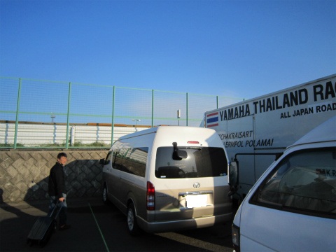 6:09 筑波サーキットに到着 國川くんと合流して、途中セブンイレブンで朝食を買いだし、筑波サーキットに到着しました。 今回のベースはBパドック、ダンロップブリッジ脇になります。 そして、お隣さんはST600クラスに参戦中の外国人強豪チームのタイヤマハですね。 |