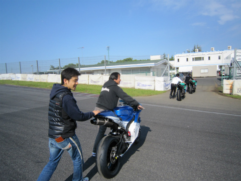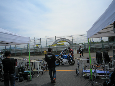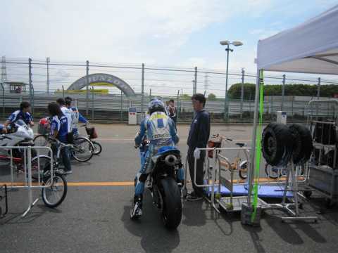 10:22 走行終了 30分間の走行時間が終了し、國川選手がパドックに戻ってきました。 走行の結果は・・・・。 わかりません。 (^^;) だって自分の練習走行の予約してたからね。 |