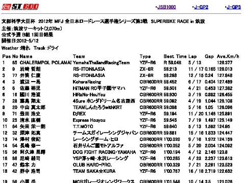 | 2012年5月12日(土) 全日本ロードレース選手権 第3戦 筑波(予選) | |||