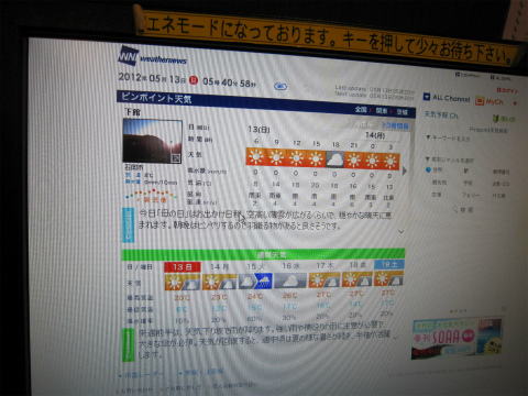 5:40 天気は 集合前に、ホテルのロビーにあるパソコンで今日の天気をチェック。 全然大丈夫。 5:45には全員そろったので、筑波サーキットに向かって出発です。 |