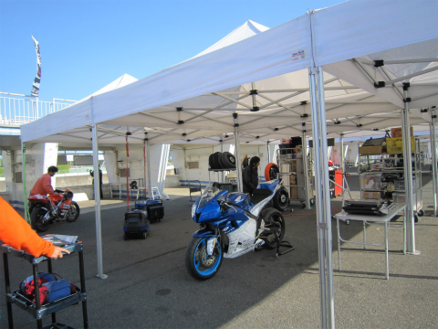 16:28 片付け中 ピットウォーク終了後。 ピット裏のパドックから撤収。 昼食を食べて、ちょっとJSBのレース観戦。 そして、ベースのBパドックの片付けをしています。 今回は、ピットウォークの写真が無かったり、JSBのレポが無かったりと、手抜きをしているようですが、結構これで一杯一杯。 |