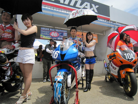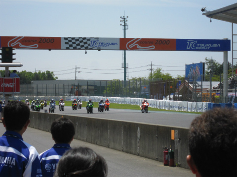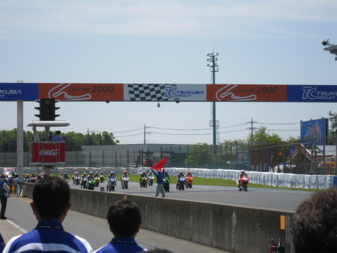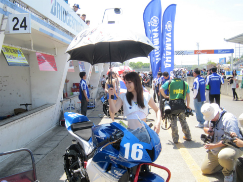 11:24 グリッドに 11:20になり、コースイン。 グリッドにマシンを並べます。 最近は、このホームページもスタッフのみんなに知れ渡ったこともあってか、カメラに向かって笑顔を返してくれます。(笑) そしてグリッド上では、各ライダーの選手紹介が行われています。 |