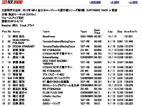 | 2012年5月13日(日) 全日本ロードレース選手権 第3戦 筑波(決勝) | |||
