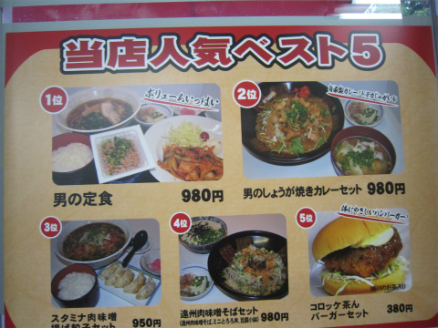 18:30 食べるのは 前回のブログでは、当店人気ベスト1位の”男の定食”を食べました。 そして、実はその後にも寄る機会があって、人気ベスト2位の”男のしょうが焼きカレーセットを食べたのですが、ブログには上げませんでした。 その一つ目の理由は、「カレーが思いの外、辛くなかったから」 そしてもう一つの理由は、「カレーにジャガイモがゴロゴロ入っていたから」 まあ、やっぱ”男のカレー”を語る以上、カレーはガツンと辛くなければ、と言うのが自分の見解。 そして、店側としては、ジャガイモゴロゴロで、男のボリューム感を出したかったんだろうけど、ジャガイモがゴロゴロ入ったカレーは好みじゃ無いと言う、完全に個人的な好みの話し。 そんなわけで、今回は人気ベスト3位の”スタミナ肉味噌ラーメン 餃子セット”をご注文。 |