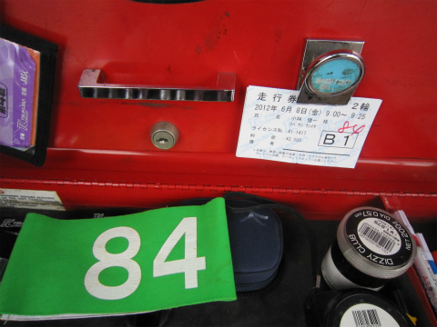 8:37 走行券を購入 コントロールタワー下に行って、走行券を買ってきた。 今日は2日前の当月予約で3本確保。 1本目は9:00〜9:25 とゆっくりスタートです。 そして、一人で来ているので腕章、#84。 |