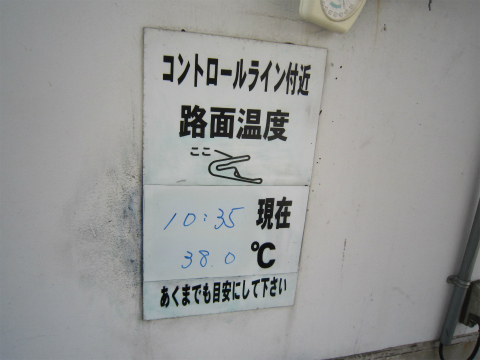 12:47 走行後のコンディション 路面温度が38℃。 タイヤが高温で垂れるところまで行かなくて、イイ感じで走れる温度ですね。 気温28.5℃。 自分には暑いです。 出来れば、ライディングするのなら18℃前後がイイです。とわがままを言っても無駄。(笑) |