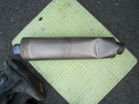 15:30 シートカウルより そして、転倒当日も確認していたテールカウル。 よりも、マフラーのサイレンサーが! ”ベッコリ!” |