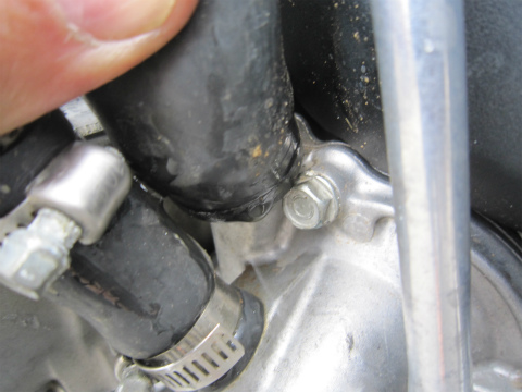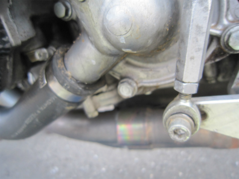 15:53 冷却水も ばらしていると、冷却水も漏れている。 歳のせいか緩みっぱなしですね。 (というギャグは若い人には通じない) で、冷却水はウォーターポンプの下のボルトから漏れていました。 下のボルトはドレンになっているようです。 転倒の衝撃で、ウォーターポンプを打ったのかもしれません。 念のため、ウォーターポンプのボルトとワッシャーは注文します。 |