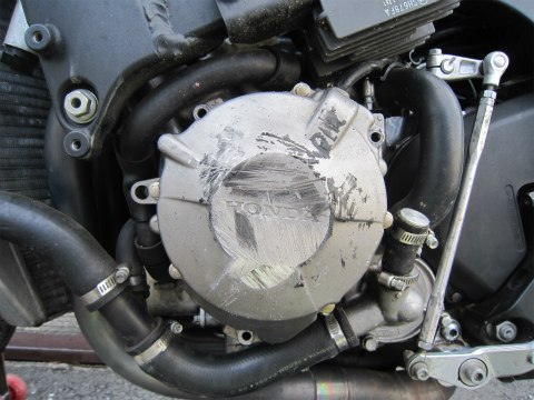 15:53 エンジン2次カバー 先々週、取り付けたばかりのエンジン2次カバー。 短命でした。 (>_<) そして、書き忘れましたが、転倒当日にアンダーカウルを外したら、内側にオイルが漏れていました。 バイクを起こしているときは、漏れていませんでしたが、倒すと漏れるようです。 どこから漏れているか、今の時点で不明? |
