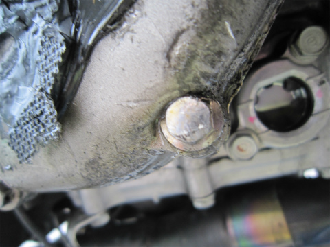 16:33 潰れてる(T-T) エンジン2次カバーを外して、クラッチカバーをチェックすると。 カバーの下の部分のボルト周辺が潰れてる! そして、その下を指で触ると、オイルが・・・。 ここが漏れてるね。 クラッチカバーもご注文です。 チェックしたところ、故障箇所は今のところぐらい。 まずは、エンジンの水漏れとオイル漏れを直さないと、走れる目処(めど)がたたないので、水漏れとオイル漏れを先に修理することにします。 部品は、明日K2Yに注文だな。 |