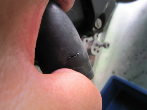 17:22 蓋側 蓋側の一番下のボルトはやはりドレンになっていました。 転倒の衝撃で、少しずれて、水が漏れたのでしょう、おそらく。 |