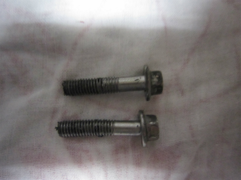 19:45 ボルトは 取り外したボルト 上は、通常の位置から外したボルト。 下は、さっきのカバーの潰れた部分を締めていたボルト。 『曲がってる! (TOT)』 このボルトも交換だ。 で、追加注文。 |