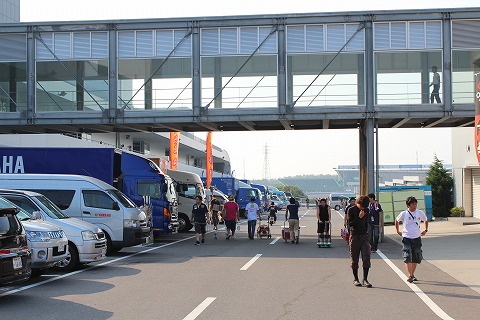 7:12 鈴鹿サーキットに到着 四日市から途中コンビニで買い物をして、約30分強で鈴鹿サーキットに到着。 昨日と同じようにモータースポーツゲートから入場します。 |
