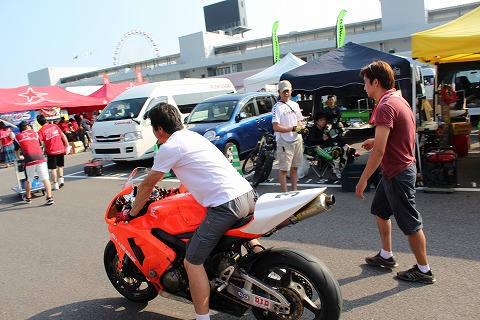 7:57 怒られる 装備もなし、ヘルメットも被らずバイクを走らせていたので、鈴鹿のスタッフに怒られる!(>_<) 走ったと言っても、パドックを移動させてただけですけどね。 ※ 良い子のみなさんは真似しちゃダメだよ。(^_^;) |