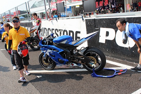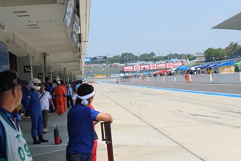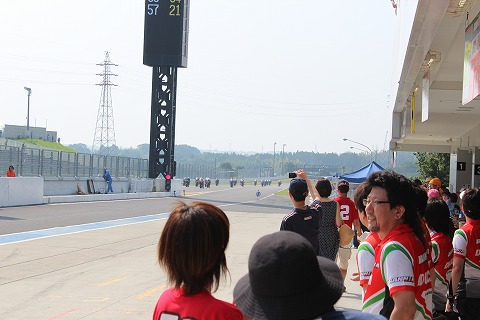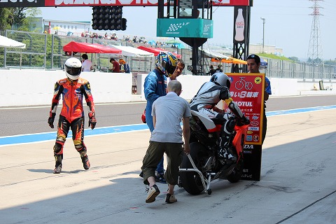 8:05 パドックから マシンを確認が終わったところでマシンをパドックからピットに移動。 決勝開始まで、まだ1時間もあるのに、ずいぶん早い移動だな。と自分的には思ってしまいます。 |