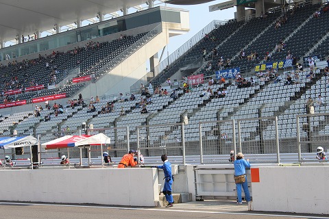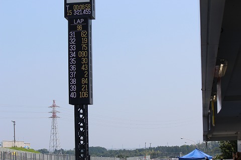 8:33 30分前 決勝30分前になって、ピットロードエンドのシグナルがグリーンに変わり、コースインの時間です。 「30分も前にコースインするんだぁ」と妙に感心。 筑波の地方戦あたりだとコースインは15分前とかだからね。 |