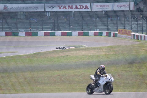 10:39 転倒 激感エリアで写真を撮り、ピットに戻ってくると、モニターに映し出されたのは、#30 転倒! やっちゃった。(>_<) 場所は最終コーナー手前のシケイン。 39周を終了した時点での転倒です。 大きな怪我は無いようですが、ピットに戻ってこられるのかな? |