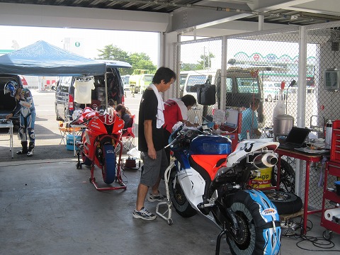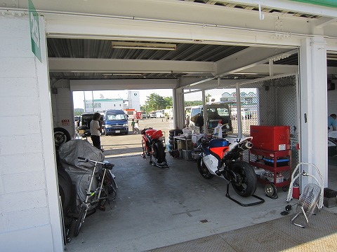 7:59 走行準備 7時半にゲートが開いた後、パドックに着いて、搬入。 走行の準備をします。 今日の走行は40分が2本。 1本目は10:00〜10:40です。 |