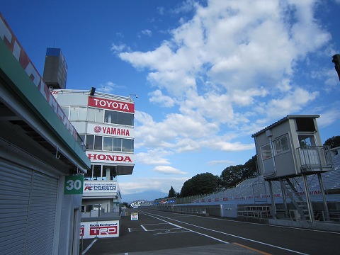 7:19 夏空 SUGOに到着して、ピットのシャッターを開けてピットロードに出ると夏空だね。 今日も暑くなりそうだ。 と言うより、すでに暑い。(^_^;) |