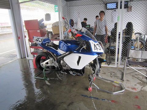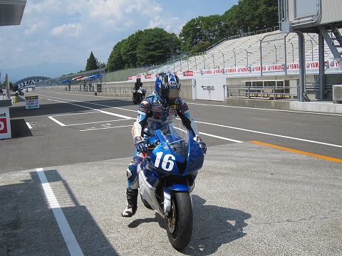 12:12 2本目終了 そして、40分間の走行が終了。 途中、ピットインしてセッティングを換えピットアウト。 それを繰り返してセッティングを詰めていきます。 セッティングを変更すると、微妙にタイムが変わっていくところが、素人の自分からすると『凄いなぁ。』と感じます。 このクソ暑い中、淡々と走り続ける国際のライダーは、間違いなくアスリートだね。 |