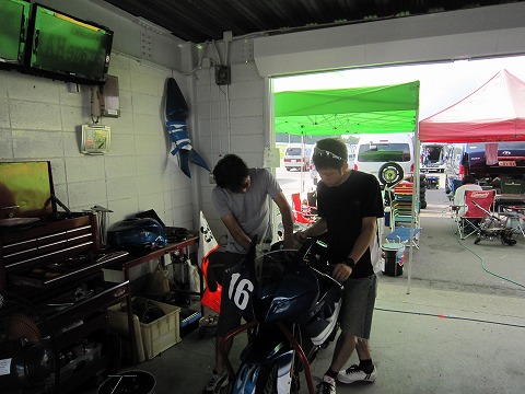 8:41 混乱はなし メカの清水さんがあとはウォーマーをかけるだけでバイクを走れる状態にして運んできたので、大きな混乱もなし。 前回のテストの状況から、セッティングを変更して走行します。 |