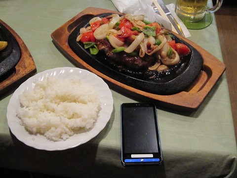 21:20 遅い夕食 2本目の走行が12:40に終わり、今日は早くホテルに戻れるかと期待していましたが、いろいろと問題が出たり、ステッカーを貼ってたりして結局この時間にホテルに戻ってきて、遅い夕食になってしまいました。 まあ、レースウィークなんて得てしてそんなもんです。 夕食はホテルの近くの洋食屋さんで。 ハンバーグのアメリカ風。 野菜たっぷり、ボリュームたっぷりで満足。(*^O^*) |