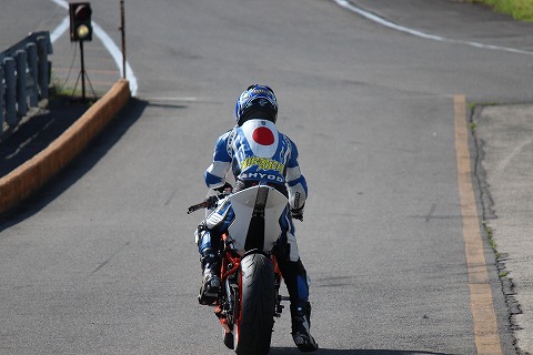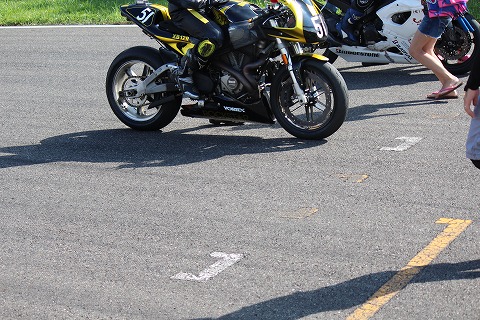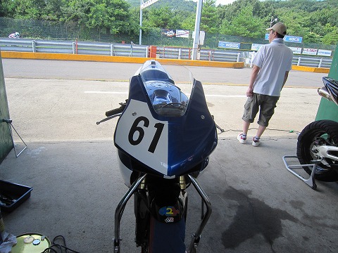 9:15−9:30 予選1回目 午前中は予選の時間。 15分の予選を2回やって、その合計タイムを予選の順位にします。 そして、予選は3組に分かれて走ります。 自分は”予選1組”。 予選の”組”は自己申告制で1分10秒以下で走れる人は、予選1組です。 XPDのおニューのブーツがまだ硬くて、シフトペダルの下にブーツを入れにくい。 ステップワークって大事だね。 11台で走って、5番手。 タイムは1分5秒5。 まあ、走り出しなんで、こんなもんでしょう。 |
