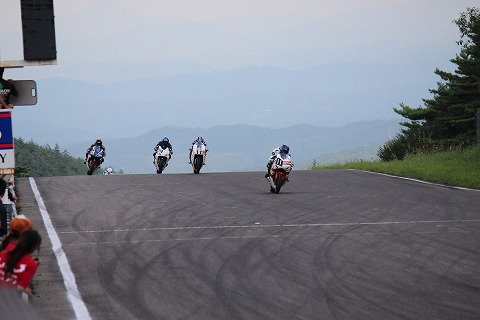 14:46 3番手 スタートして、最初の1ヘアピン立ち上がり。 いくら國川くんでも、やっぱ先頭を走るのは難しく、現在3番手。 やっぱり、サーキット走行用に造ったバイクは速いね。 と言うことで、1ヒート目のレポはここで終わり。 (@_@) (なんと、中途半端な!) |