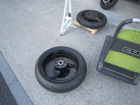 17:57 タイヤ交換 夕方になり、日陰になったので、重い腰を上げてタイヤ交換することにします。 昨日からタイヤ交換ばっかしてますが、 @ 昨日:今日の練習走行用にホットチョコカップで履いていたタイヤを 外して、16ラップだけ走ったタイヤに交換。 A 昨日:もう1セットのホイルは、今日の練習に雨が降った場合、 すぐにレインタイヤを履けるようタイヤを外しておいた。 B 今日:筑波サーキットで、来週のレースの雨用タイヤを準備。 C 今日:今日練習に使ったタイヤを外して、今度のレース用に新品の タイヤに履き替え。 と言うことで、タイヤばっかり交換しているわけです。(汗) |
