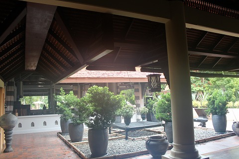 15:44 ロビー棟 ロビーのある建物に到着。 荷物を預けて、車を駐車場に。 ホテル内の建物はタイの伝統的な建物の様式を模して雰囲気があります。 |