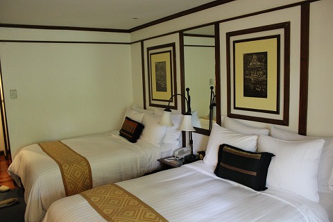 15:54 室内 室内は、ダブルのベッドが二つ。 1つのベッドに枕が5個もあるよ。 自分の経験から、枕の数はホテルのランクと比例するね。(笑) なぜあんなに枕がいっぱいあるか、自分にはわからない。 (@_@) |