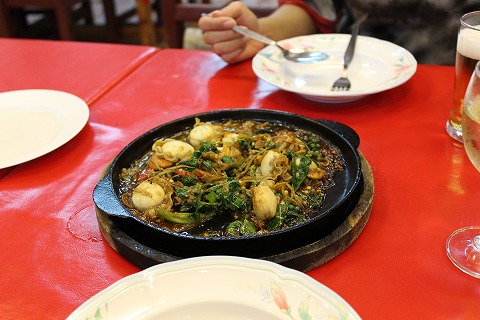 20:24 ホタテの炒め物 しばらくして料理が運ばれてきました。 まずは、ホタテの炒め物。 辛みはほとんどなくて、しっかりした味付けで美味い。 タイ料理、と言うよりか中華っぽい味付けだった。 |