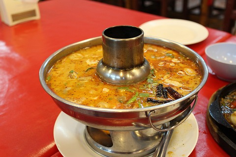 20:25 トムヤムタレー 続いてスープでトムヤムタレー。 タレーはシーフードのスープ。 一般的にトムヤムクンが名が通っていますが、クンはエビのことです。 このトムヤムタレーはエビをはじめホタテ、魚の身(魚類不明)が入っていて美味しい。 辛さも結構辛くて、額から汗が落ちるほどで、地元民バージョン。 久しぶりに本場物の美味いトムヤムいただきました。 |